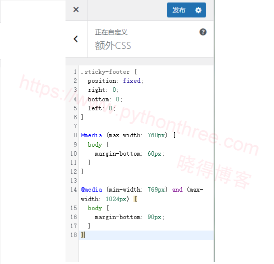 如何向GeneratePress添加粘性移动页脚 7 接下来向主题添加自定义 CSS。这可以使用 WordPress 定制器来完成。前几行将使我们的页脚块粘在移动屏幕的底部: