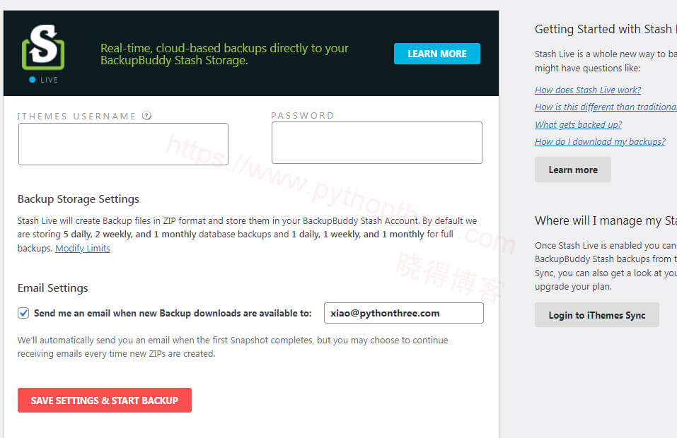 BackupBuddy插件-Stash Live实时备份部分,Stash Live 是备份 WordPress 网站的全新方式,Stash Live将以ZIP格式创建备份文件并将它们存储在您的BackupBuddy Stash帐户中。默认情况下,我们存储每日5个、每周2个和每月1个的数据库备份,以及每日1个、每周1个和 每月1个的完整备份。