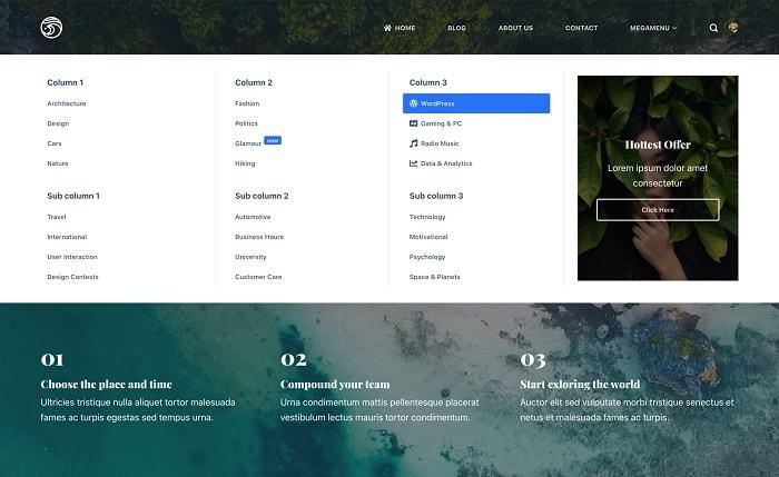 - 高级菜单——在您的菜单中制作一个出色的下拉列表,控制从覆盖宽度到段格式以及它们的显示方式的一切。