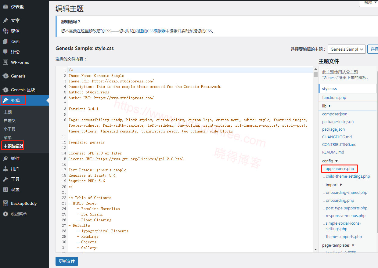 Genesis Sample 主题默认使用Source Sans Pro Google 字体。如果想更改网站中的字体,需要登录WordPress仪表盘,点击” 外观 “->” 主题编辑器 “->” config “-> ” appearance.php “文件和style.css文件。