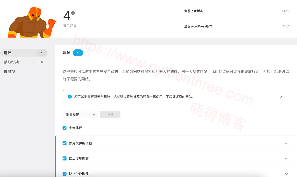 最常见的Web应用程序安全风险包括注入攻击、跨站点脚本、破坏身份验证等。以下是Defender Security插件提供的功能。