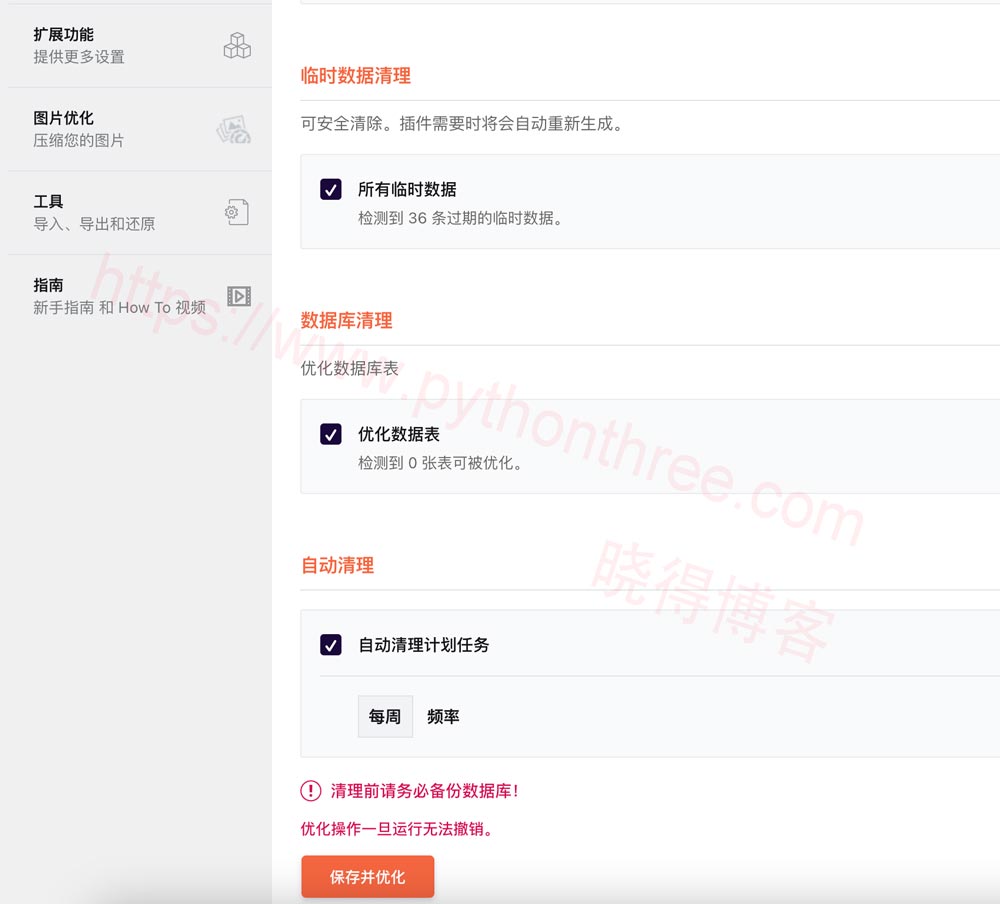 注意:应该在进行这些设置之前备份网站,因为数据库清理可能是一项有风险的操作。