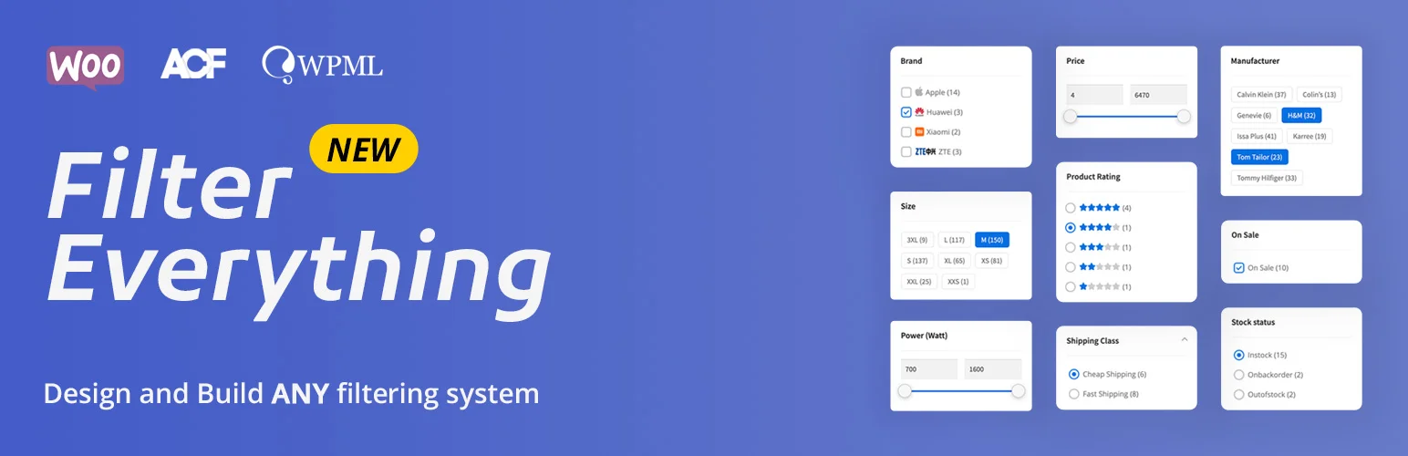 Filter Everything插件是一款全新的专业工具WordPress/WooCommerce产品过滤器,可让您为您的网站构建强大的多面过滤系统。