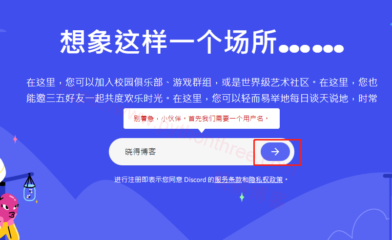 创建Discord帐户 输入您要使用的用户名,然后单击箭头。