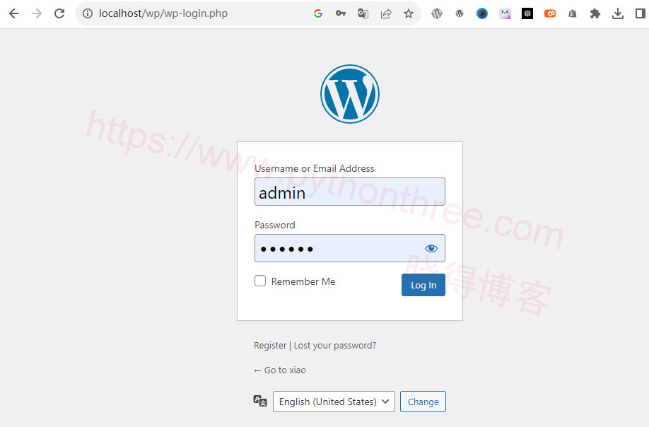 [2025]使用MAMP在Windows本地安装WordPress 24 现在,您可以使用localhost / wp / wp-admin URL,登录WordPress测试站点。