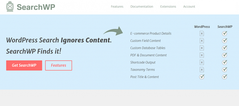 SearchWP Live Ajax Search插件允许自定义您的搜索,它易于使用,用户可以轻松找到相关内容。SearchWP是一个高级插件,其中有更深层次的搜索功能。此插件还提供PDF文档中的扫描和搜索内容。它允许在帖子/页面标题、内容、类别、标签和评论中搜索关键字。